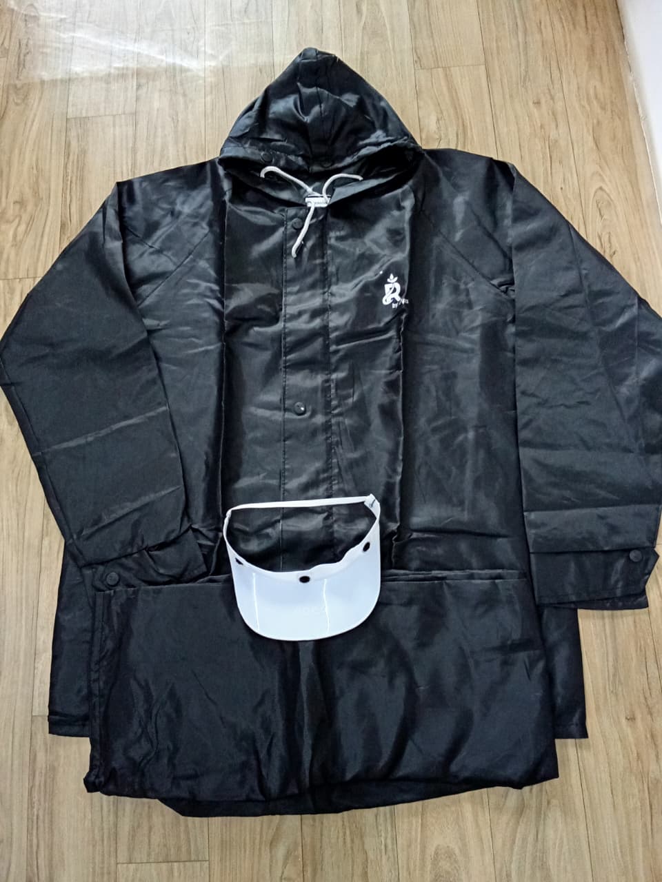 Water-resistant raincoat with an attached cap for complete protection from rain and wind. Made from durable, lightweight material for comfortable all-day wear and easy movement. Custom branding available with logo printing, making it ideal for corporate teams, outdoor staff, events, and promotional use.