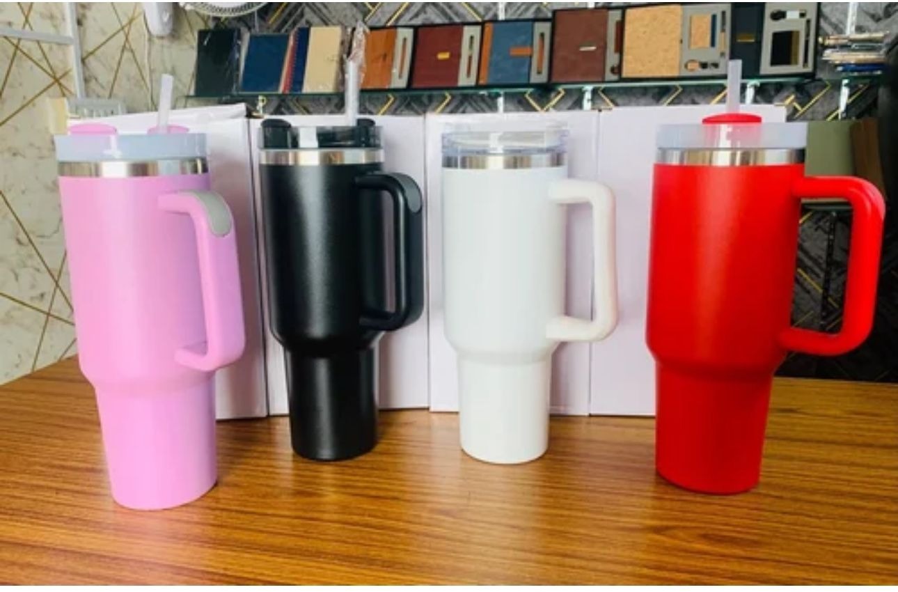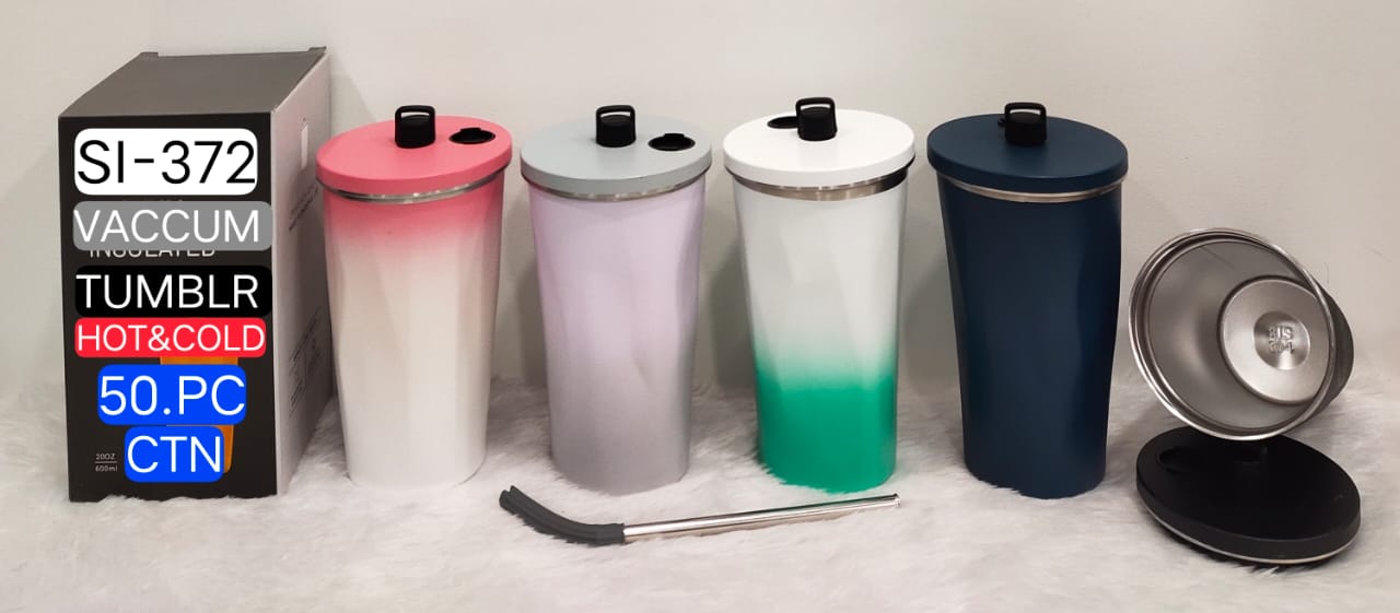 Tumblers are made from stainless steel or plastic. They have a double-wall design to keep beverages cold or hot and are typically equipped with a lid and a straw.